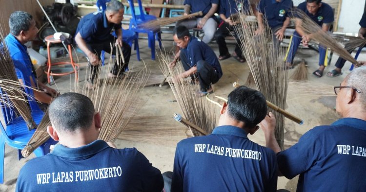 Purwokerto - Lapas Kelas IIA Purwokerto melaksanakan kegiatan pelatihan pembuatan sapu lidi pada Kamis, 27 November 2025, mulai pukul 09.30 WIB hingga selesai, bertempat di Lapas Kelas IIA Purwokerto.