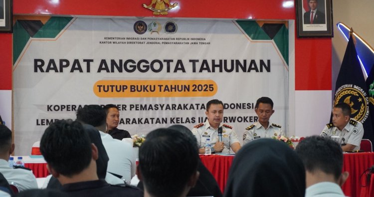 PURWOKERTO - Rapat Anggota Tahunan (RAT) Tahun Buku 2025 Primkopasindo digelar tertib di aula Lapas Kelas IIA Purwokerto sebagai forum evaluasi kinerja koperasi. Pengurus memaparkan laporan pertanggungjawaban, perkembangan usaha, serta kondisi keuangan kepada seluruh anggota. RAT menjadi wujud akuntabilitas dan keterbukaan pengelolaan Primkopasindo di lingkungan lapas, Rabu (07/01/2026).