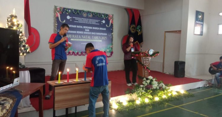 Purwokerto - - Gema lagu pujian dan suasana khidmat menyelimuti Lembaga Pemasyarakatan (Lapas) Narkotika Kelas IIB Purwokerto, Selasa (23/12/2025). Puluhan warga binaan yang beragama Kristen dan Katolik berkumpul bersama untuk melaksanakan ibadah perayaan Natal dengan penuh suka cita, meski jauh dari keluarga.